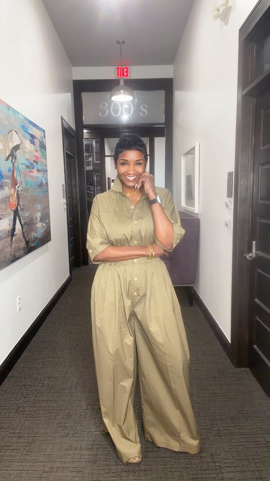 Safari Draped Olive Pants Set
