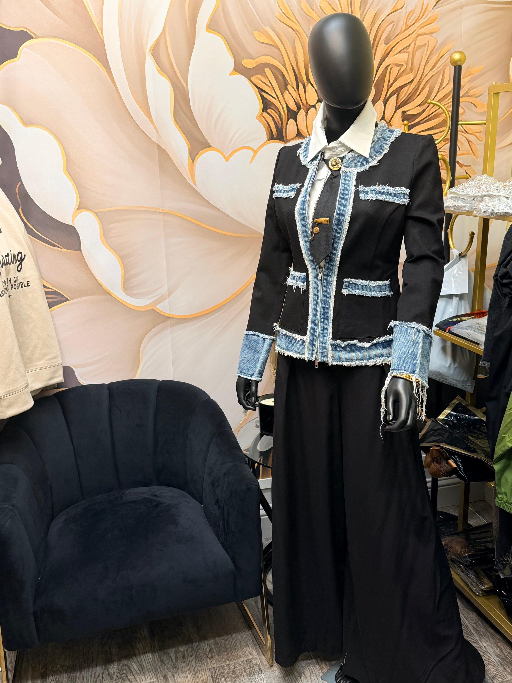 Black with denim detail